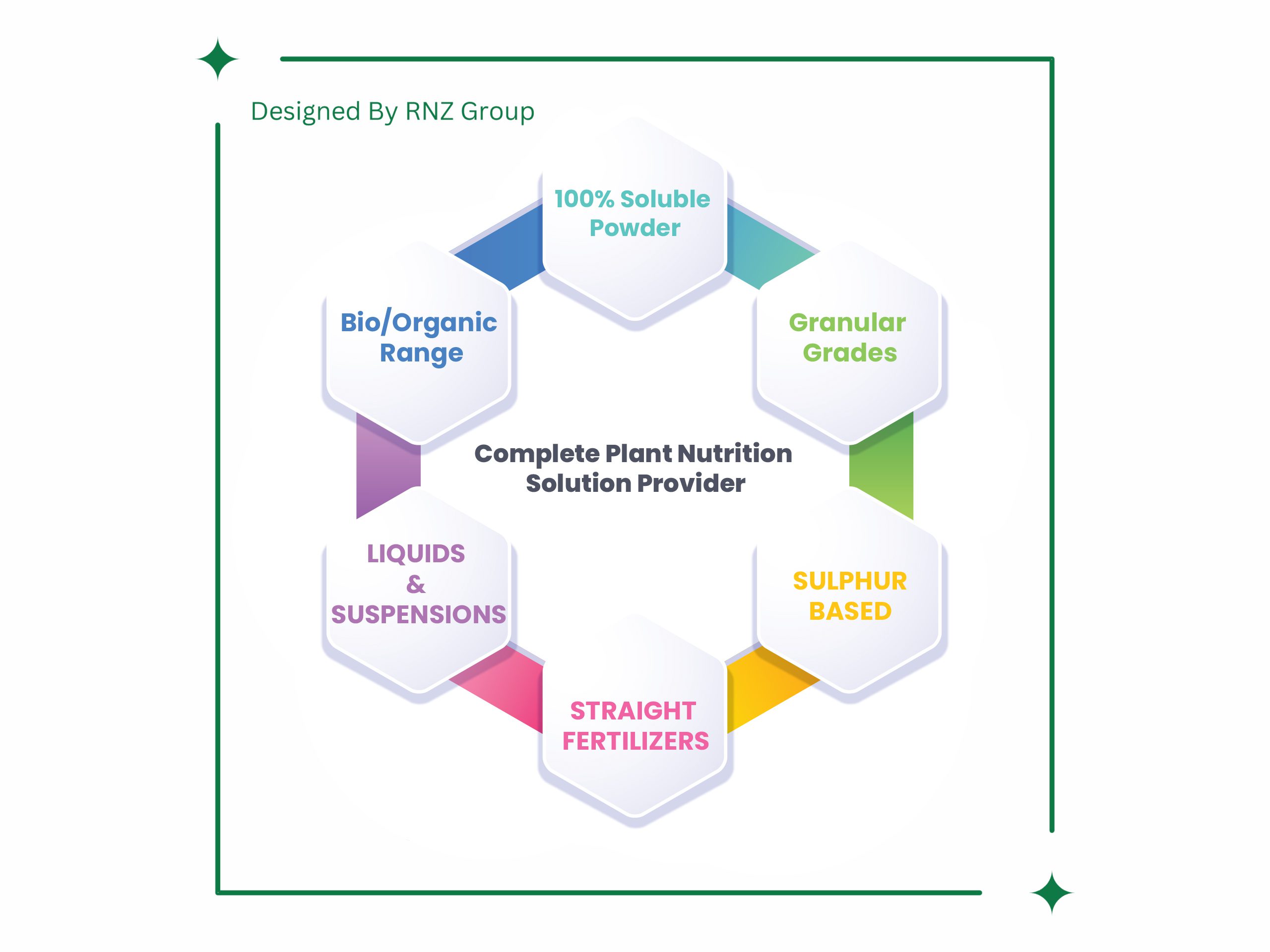 With its key divisions — RNZ International FZCO, RNZ AgroTech Industries Ltd., RNZ Newtech Agro Manufacturing LLC, and Agrin Fertilizers Trading LLC (AFT) — the Group delivers comprehensive crop nutrition and agricultural solutions through innovation, sustainability, and science-driven research.