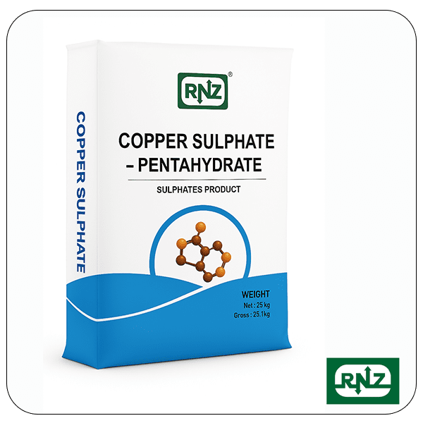 Copper Sulphate Pentahydrate is a blue crystalline micronutrient (25% Cu) and fungicide used in agriculture to correct copper deficiencies in crops like wheat, citrus, grapes, and vegetables, while controlling fungi, algae, and pests. It promotes enzyme function, lignin formation for disease resistance, and fruit quality, increasing yields by 10-15% in deficient soils. As a fertilizer, it enhances pigmentation and growth; as Bordeaux mixture (with lime), it protects against blights and mildews.